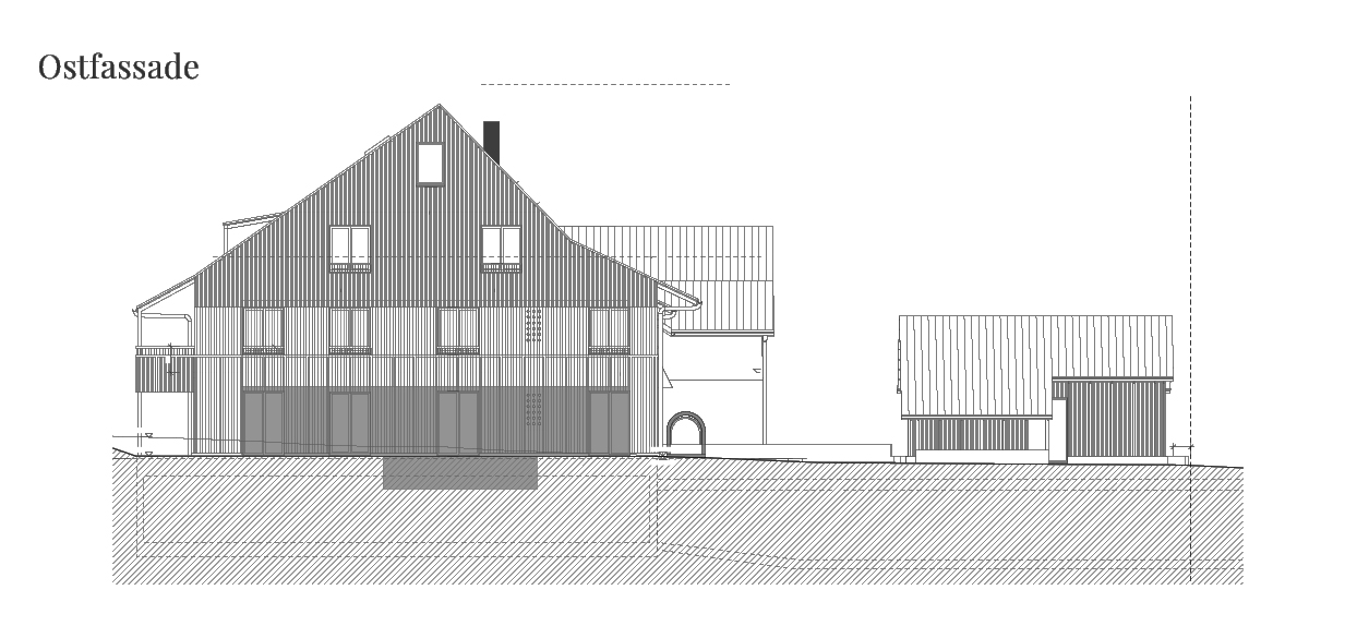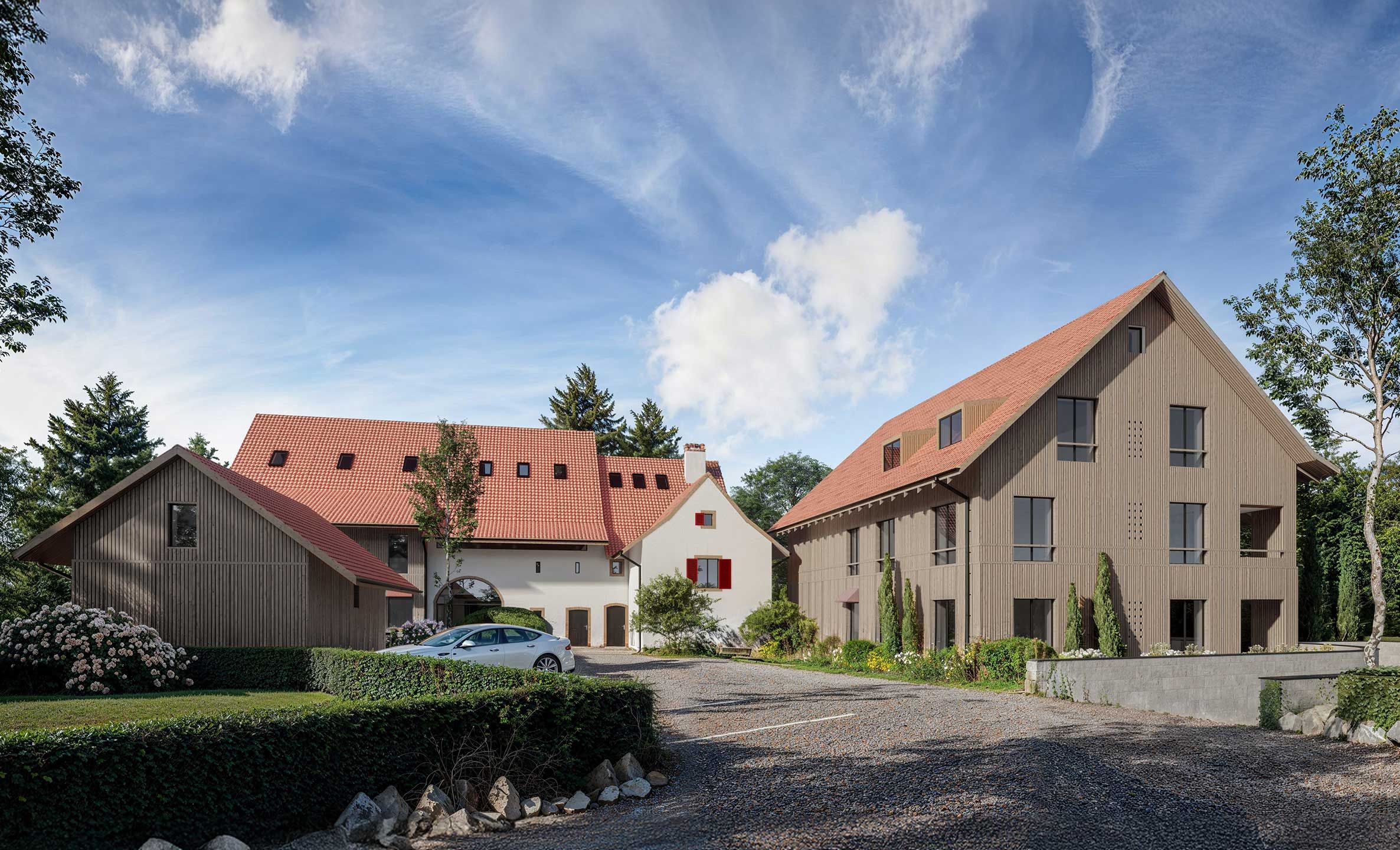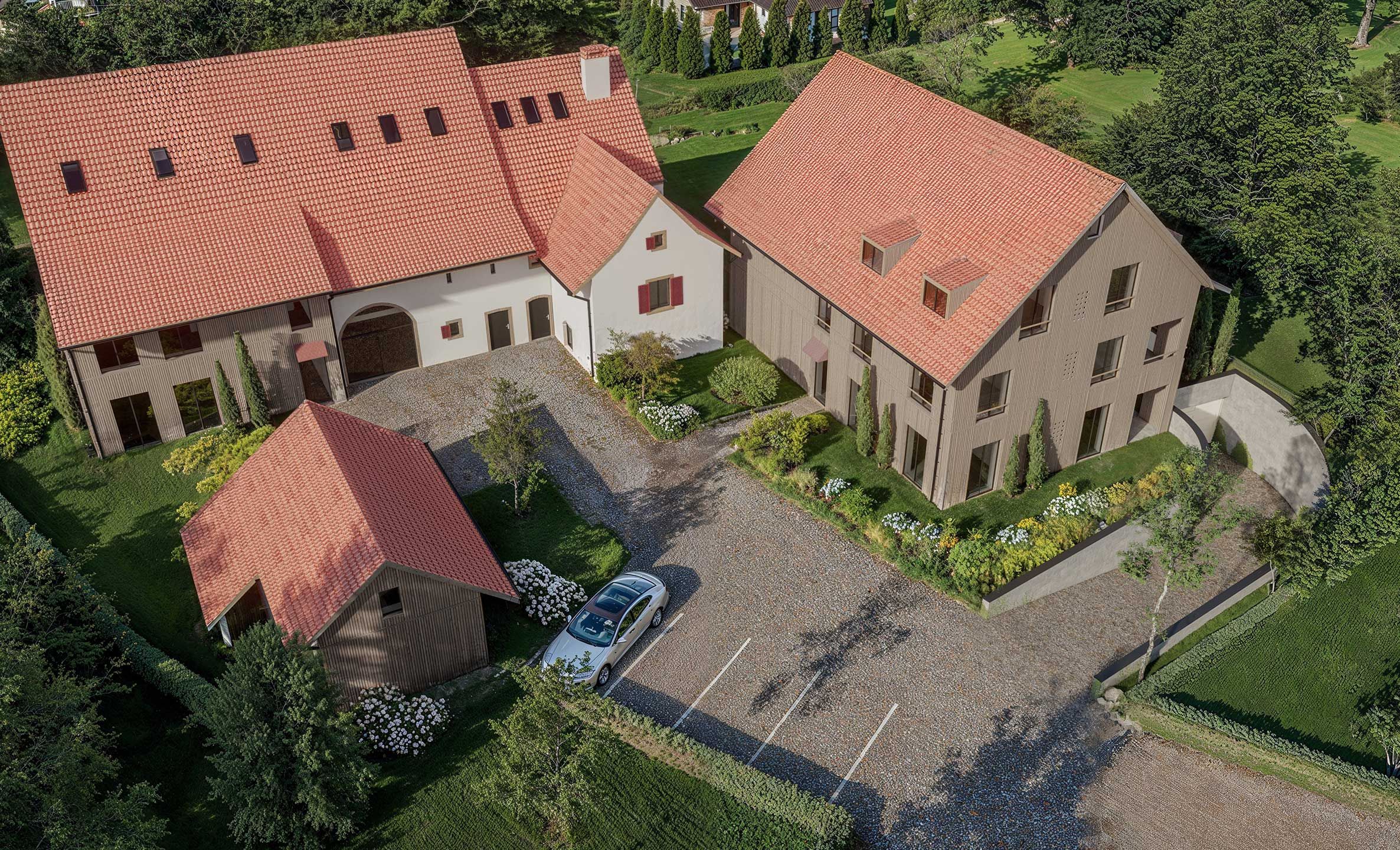 Der alte Wohn-und Ökonomieteil hat repräsentative offene Räume zum Wohnen oder aber auch zum Arbeiten. Da die Autos in der Autoeinstellhalle stehen, bleiben auf der Oberfläche viel Ruhe und Platz für das Wohnen und Leben. Die Stärke des Bauprojekts liegt in deren Aufwertung als Gesamtanlage. Die umgebende Natur und die historischen Bauten werden nicht zur Kulisse abgewertet, auch geht es nicht um die Inszenierung eines Neubaus, sondern alle drei Bauten tragen als vollwertige Bestandteile zur Überbauung bei.