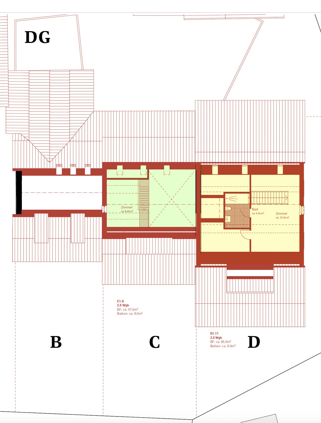 Wohnhaus D 1.11 | 2.OG 3.5-Zimmer (88.5m²) + Galerie (17m²)+ Balkon (8m²)auf Anfrage