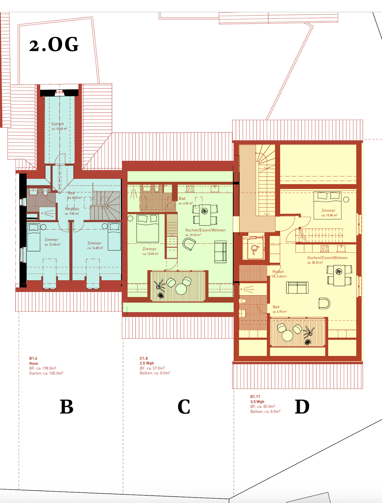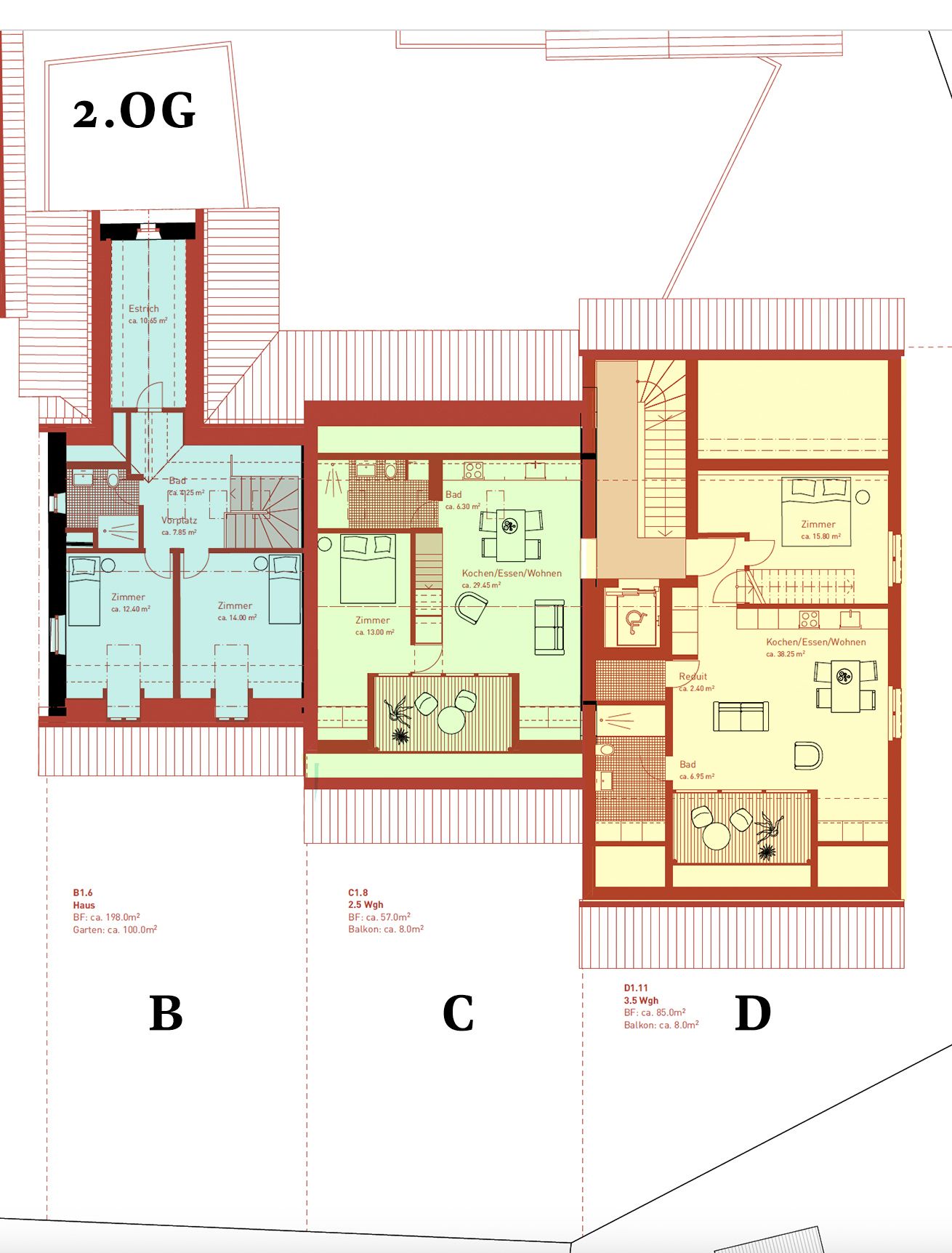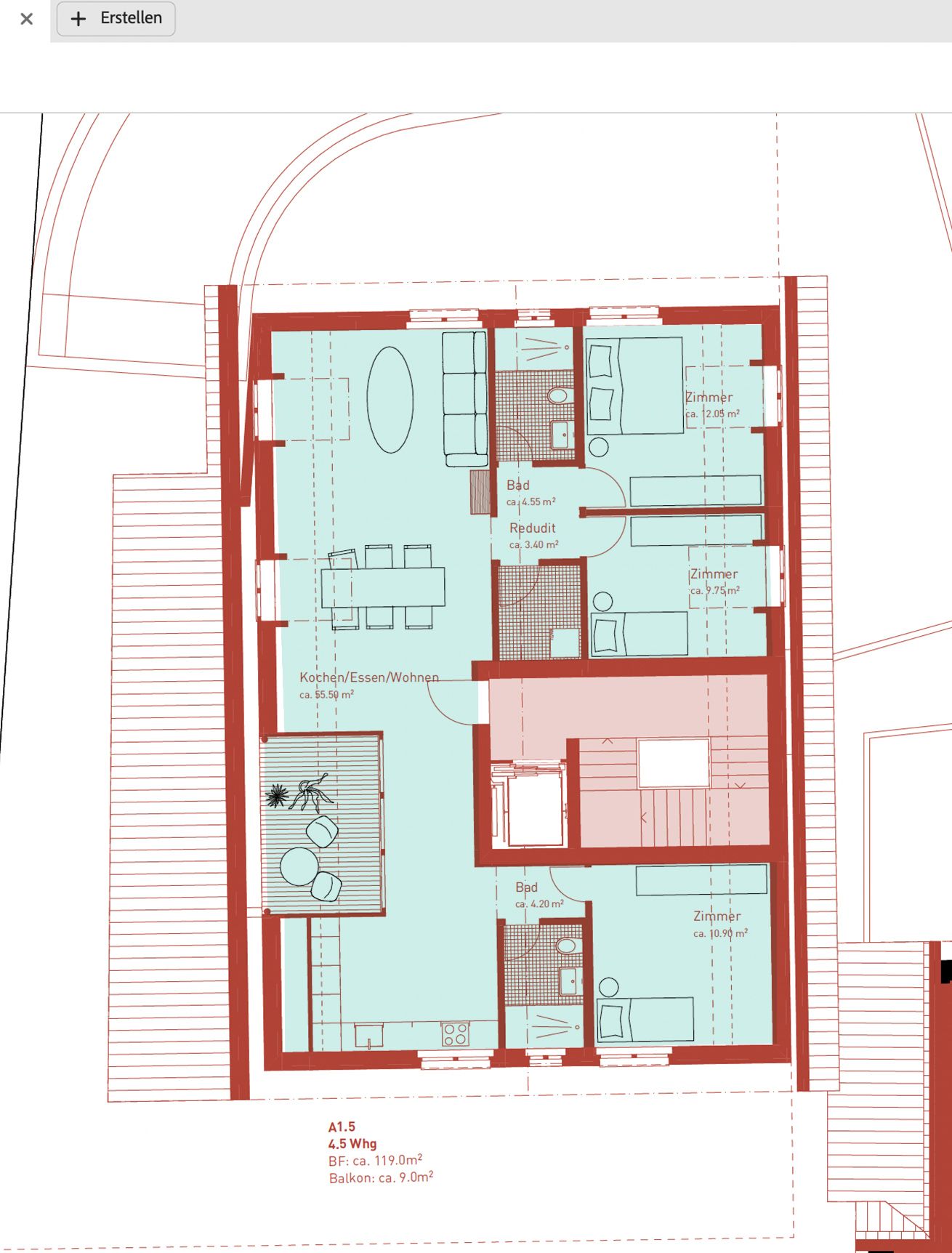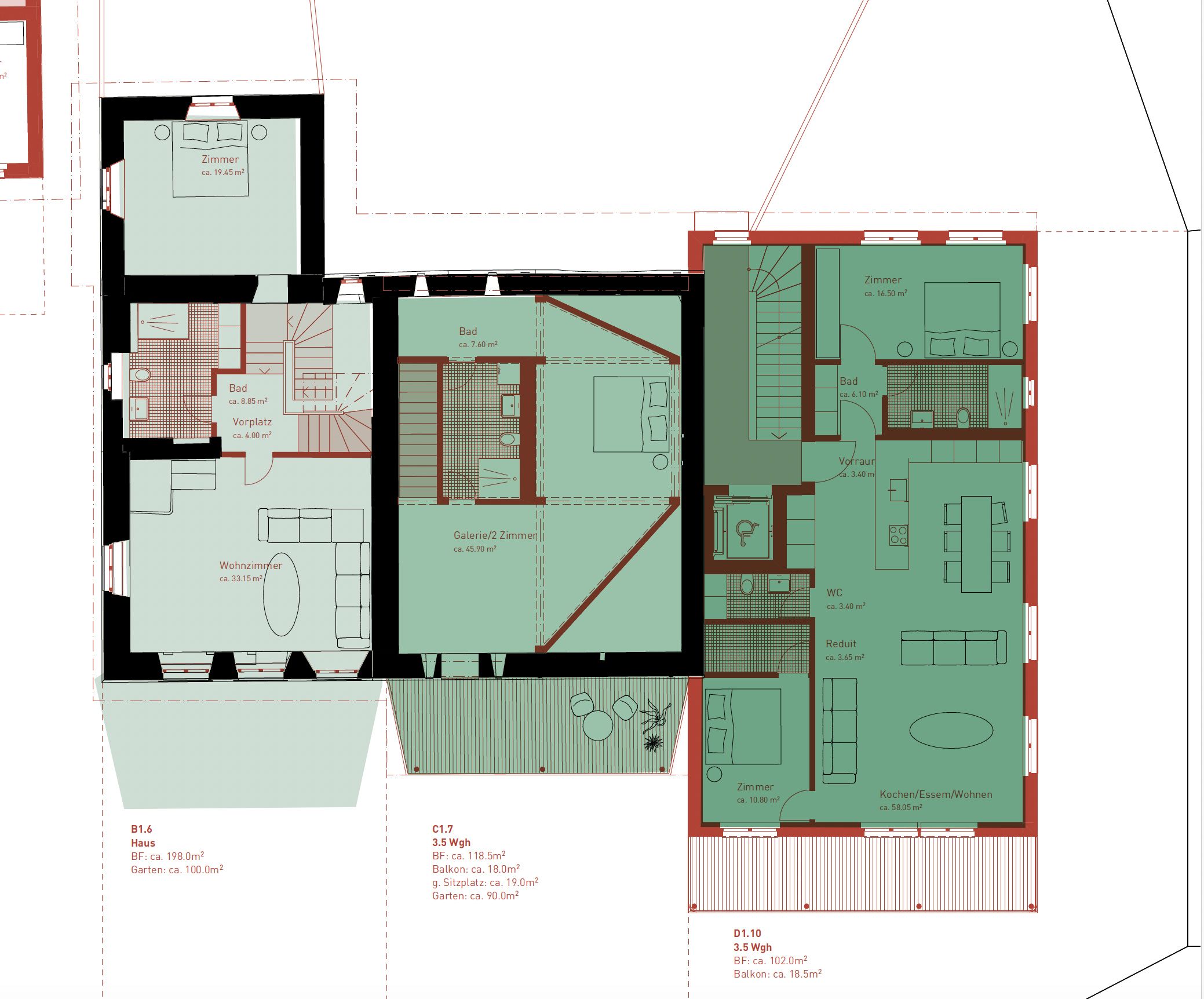 Wohnhaus C 1.7 | EG Maisonette – 3.5-Zimmer (116m²)Balkon (20m²) + gedeckter Sitzplatz (20m²) + Garten (90m²)