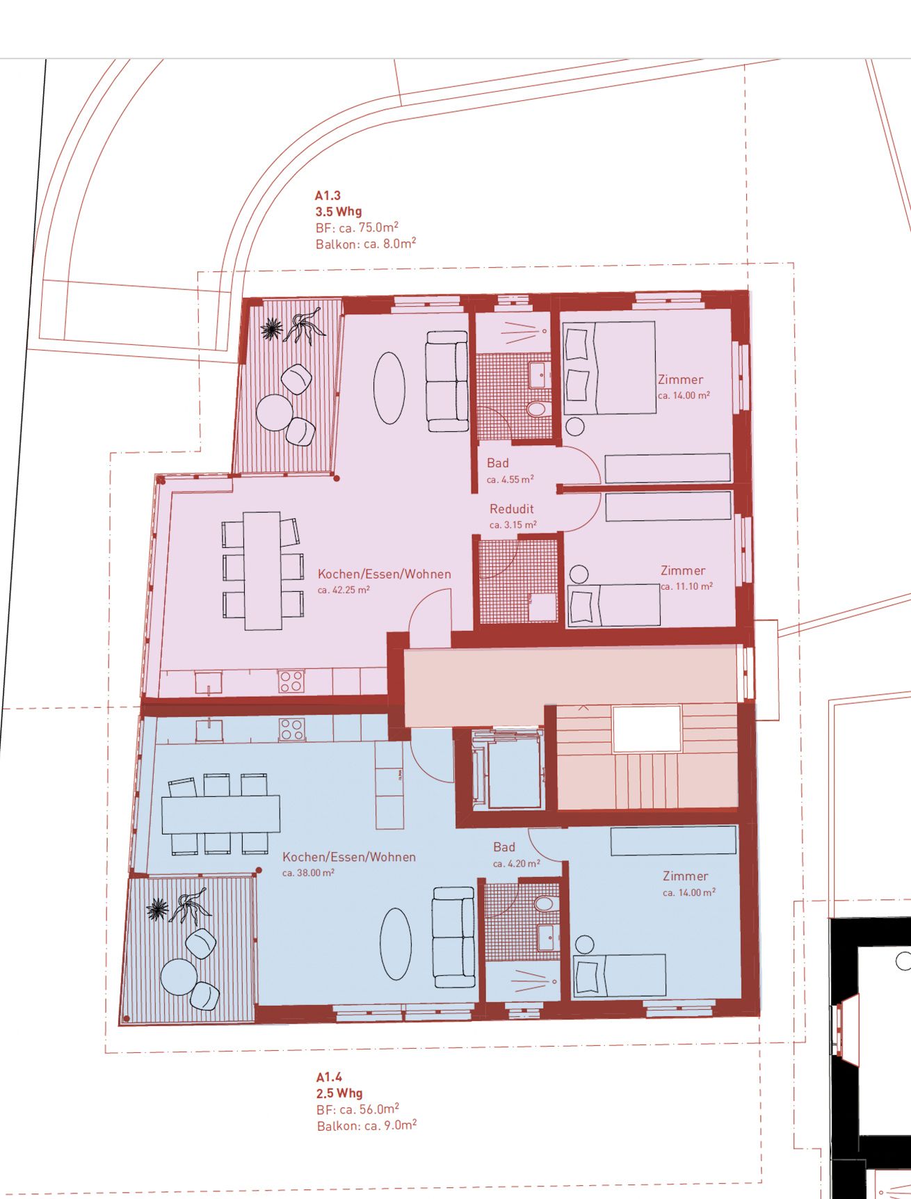 Solitär A 1.3 | OG Rechts – 3.5 Zimmer (75 m²)+ Balkon (8m²)auf Anfrage
